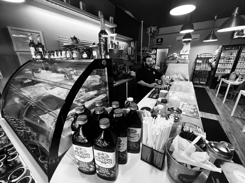 Marco Daniele works behind the counter at Coffee Break, Photo credit: Dana Glazer