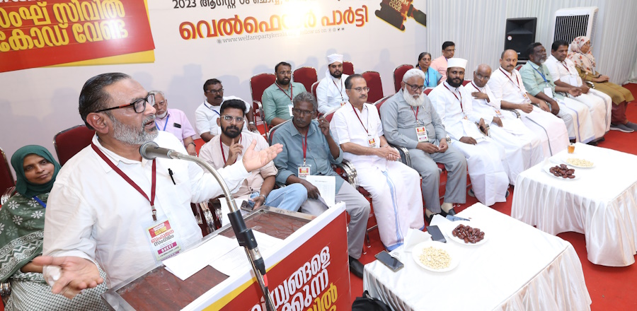 സംഘ് പരിവാർ ഏകസിവിൽ കോഡ് വിവാദം ഉയർത്തുന്നത് പ്രധാനമായും രാജ്യത്തെ മുസ് ലിം സമുദായത്തെ ഉന്നം വെച്ചാണെന്ന് അധ്യക്ഷം വഹിച്ച വെൽഫെയർ പാർട്ടി സംസ്ഥാന പ്രസിഡന്റ് റസാഖ് പാലേരി ചൂണ്ടിക്കാട്ടി. മുസ് ലിം വിദ്വേഷം കുത്തിവെച്ച് വിജയിച്ച ഗുജറാത്ത് മോഡൽ ഭരണമാണവർ മുന്നോട്ടു വെക്കുന്നത് എന്നതിൻ്റെ തെളിവാണിത്. മുസ് ലിം അപരനെ സൃഷ്ടിച്ച് പുതിയ രാഷ്ട്രീയ തന്ത്രം പയറ്റുകയാണ് ഏക സിവിൽ കോഡിനെ സംബന്ധിച്ച ചർച്ചകളിലൂടെ സംഘ്പരിവാർ ചെയ്യുന്നത്. സംഘ് പരിവാർ താൽപര്യങ്ങൾക്ക് വളംവെക്കാൻ ഇടം നൽകുന്ന വിധം ഇടതുപക്ഷ സംഘടനകളും സാമുദായിക സംഘടനകളും സ്വീകരിക്കുന്ന നിലപാടുകൾ പുന:പരിശോധിക്കണം. കക്ഷി താൽപര്യങ്ങളുടെ സംരക്ഷണത്തിനും കയ്യടിക്കും വേണ്ടി നടത്തുന്ന ഇത്തരം ഇടപാടുകൾ യഥാർത്ഥ വസ്തുതകളിൽ നിന്നും ജനശ്രദ്ധ തിരിച്ചുവിടാൻ മാത്രമേ ഉപകരിക്കൂ എന്നും അദ്ദേഹം ഓർമിപ്പിച്ചു.