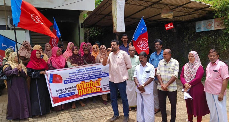 നിൽപ്പ് സമരം എഫ് ഐ ടി യു സംസ്ഥാന ജനറൽ സെക്രട്ടറി തസ്ലീം മമ്പാട് ഉദ്ഘാടനം ചെയ്തു. രാജ്യത്ത് വലിയ രീതിയിലുള്ള തൊഴിലവകാശ പോരാട്ടങ്ങളാണ് നടന്നുകൊണ്ടിരിക്കുന്നത് . ജീവിക്കാൻ സമ്മതിക്കാത്ത തൊഴിലാളി – ജനവിരുദ്ധ നയങ്ങൾ എൽഡിഎഫ് സർക്കാർ സംസ്ഥാനത്തും നടപ്പിലാക്കി കൊണ്ടിരിക്കുന്നതിന്റെ ഉദാഹരണമാണ് പിണറായി സർക്കാരിന്റെ തൊഴിലാളി നയങ്ങൾ എന്നും കേന്ദ്ര സർക്കാരിന്റെ തൊഴിലാളി വിരുദ്ധ നയങ്ങൾ പുതിയ പലപേരുകളിലായി സംസ്ഥാനത്ത് നടപ്പിലാക്കി കൊണ്ടിരിക്കുകയാണ് സംസ്ഥാന സർക്കാർ ചെയ്യുന്നതെന്നും അദ്ദേഹം പറഞ്ഞു. ടൈലറിങ് & ഗാർമെൻറ്സ് വർക്കേഴ്സ് യൂണിയൻ മലപ്പുറം ജില്ലാ പ്രസിഡണ്ട് റഷീദ ഖാജ അധ്യക്ഷത വഹിച്ചു.