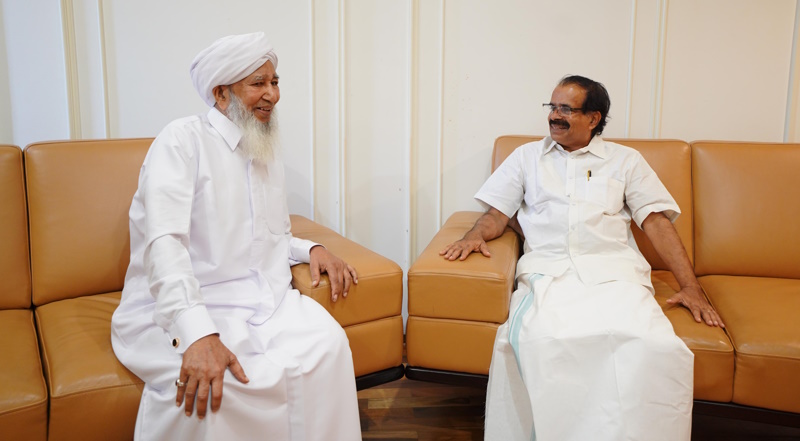 കോഴിക്കോട്: കേന്ദ്ര ന്യൂനപക്ഷ സഹമന്ത്രി ജോർജ് കുര്യൻ ഇന്ത്യൻ ഗ്രാൻഡ് മുഫ്തി കാന്തപുരം എ പി അബൂബക്കർ മുസ്ലിയാരെ സന്ദർശിച്ചു. മന്ത്രിയായ ശേഷം ആദ്യമായി കോഴിക്കോട് ജില്ലയിലെത്തിയ അദ്ദേഹം രാവിലെ ഒമ്പത് മണിക്ക് മർകസിൽ എത്തിയാണ് കാന്തപുരത്തെ കണ്ടത്. അര മണിക്കൂറോളം നീണ്ട കൂടിക്കാഴ്ചയിൽ സൗഹൃദ സംഭാഷണത്തിന് പുറമെ ന്യൂനപക്ഷ ജനവിഭാഗങ്ങളുമായി ബന്ധപ്പെട്ട കാര്യങ്ങളും സംസാരവിഷയമായി.