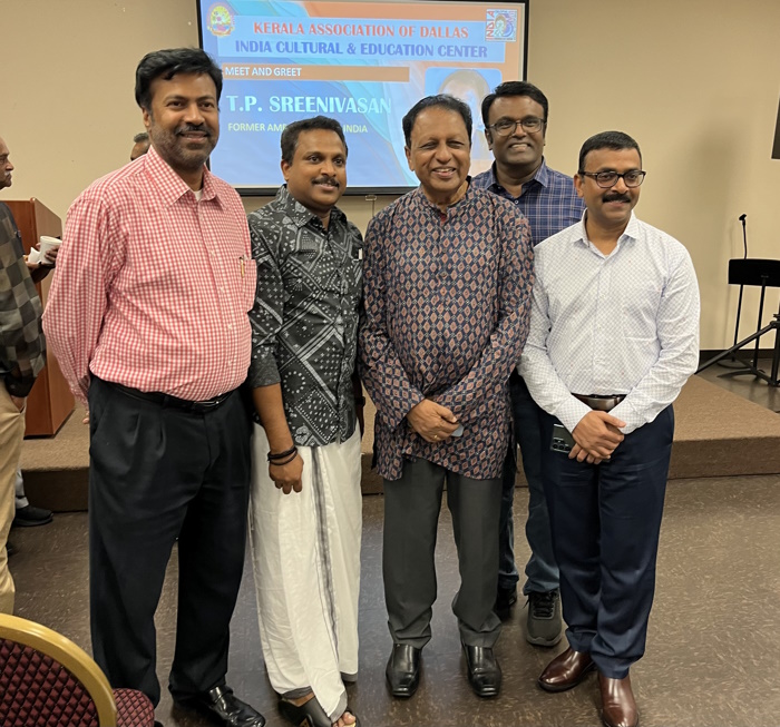 ഡാളസ് :കേരള അസോസിയേഷൻ ഓഫ് ഡാളസും ഇന്ത്യ കൾച്ചറൽ ആൻഡ് എജ്യുക്കേഷൻ സെൻ്ററും ചേർന്ന് ബഹു. ടി.പി. ശ്രീനിവാസനു (ഇന്ത്യയുടെ മുൻ അംബാസഡർ) ഉജ്വല സ്വീകരണം നൽകി.