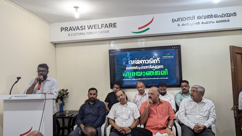 ദോഹ : കേരളം കണ്ട ഏറ്റവും കൂടുതൽ മനുഷ്യജീവനകൾ പൊലിഞ്ഞ മഹാ ദുരന്തത്തിൽ അനുശോചിച്ചും ദുരന്തത്തിൽ എല്ലാം നഷ്ടപ്പെട്ടവരെ ചേർത്തുപിടിച്ചും ഖത്തറിലെ പ്രവാസി സമൂഹം. വയനാട് ജില്ലയിലെ മുണ്ടക്കൈ, ചൂരൽമല പ്രദേശങ്ങളിൽ ഉണ്ടായ ഉരുൾപൊട്ടലിൽ ബന്ധുക്കളെയും സുഹൃത്തുക്കളെയും നഷ്ടപ്പെട്ടവർ ഉൾപ്പെടെ നിരവധി പേർ പങ്കെടുത്ത ‘വയനാടിന് ഖത്തർ പ്രവാസികളുടെ ഹൃദയാഞ്ജലി എന്ന പരിപാടി പ്രവാസി വെൽഫെയർ ആൻഡ് കൾച്ചറൽ ഫോറമാണ് സംഘടിപ്പിച്ചത്.