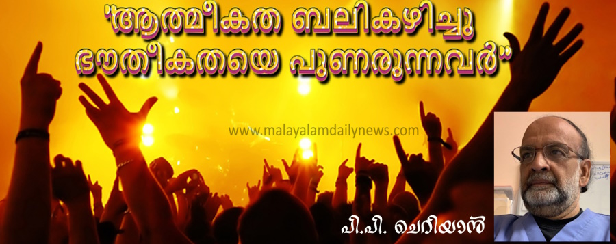 ഇത്തരത്തിലുള്ള ഗുരുതര സ്ഥിതി വിശേക്ഷമാണ് അമേരിക്കയിൽ കുടിയേറി പാർക്കുന്ന ഇന്ത്യക്കാരിൽ പ്രത്യേകിച്ച് മലയാളി സമൂഹത്തിൽ പ്രകടമായിരിക്കുന്നുവെന്നതിൽ ഒട്ടും അതിശയോക്തിയില്ല . ഇതിനെ ശരിയായി വിശകലനം ചെയ്തു സ്വീകരിക്കേണ്ടവയെ സ്വീകരിച്ചും ,തിരുത്തേണ്ടവയെ തിരുത്തിയും ആത്മീയ ഔന്ന്യത്യത്തിലേക്കു വിശ്വാസസമൂഹത്തെ നയിക്കുവാൻ എന്തെല്ലാം മാർഗങ്ങൾ സ്വീകരിക്കണമെന്ന് ആലോചിച്ചു തീരുമാനിക്കാൻ ബാധ്യസ്ഥരായവർ അഥവാ മതനേത്ര്വത്വം നിശ്ശബ്ദത പാലിക്കുന്നു . അതെ സമയം ഭൗതീക വിഷയങ്ങൾക്ക് ഊന്നൽ നൽകി ഭൗതീക നേട്ടങ്ങൾ എങ്ങനെ കൊയ്തെടുക്കാം എന്നതിൽ ശ്രദ്ധ കേന്ദ്രീകരിക്കുവാൻ ശ്രമിക്കുന്നുവെന്നത് ക്രിസ്തീയമൂല്യങ്ങളുടെ നിലനിൽപിന് തന്നെ ഭീഷിണിയുയർത്തുന്നു.
