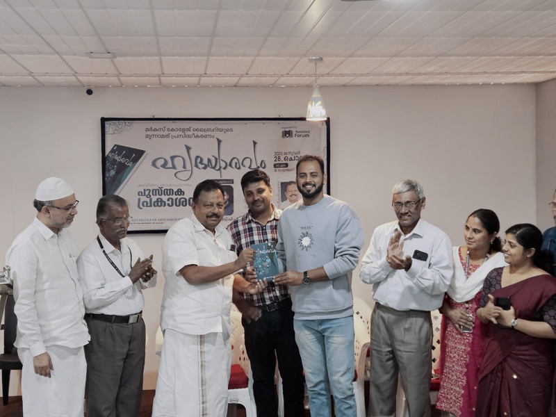 കാരന്തൂർ: മർകസ് കോളേജ് ഓഫ് ആർട്സ് ആൻഡ് സയൻസിലെ ജനറൽ ലൈബ്രറി പുറത്തിറക്കിയ മൂന്നാമത് പുസ്തകം പ്രകാശനം ചെയ്തു. ഡിപ്പാർട്ടമെന്റ് ഓഫ് കൊമേഴ്സ് വിഭാഗം അസി. പ്രൊഫസറായ നിഖിൽ ദേവ് പി പി യുടെ കവിതാ സമാഹാരമായ ‘ഹൃദയാരവം’ ആണ് പ്രമുഖ സാഹിത്യകാരനും 2024 ലെ എസ് കെ പൊറ്റക്കാട് അവാർഡ് ജേതാവുമായ നിസാർ ഇൽത്തുമിഷിൽ നിന്ന് അധ്യാപകനും സാമൂഹിക പ്രവർത്തകനുമായ സലിം മടവൂർ ഏറ്റുവാങ്ങി പ്രകാശനം ചെയ്തത്. പുസ്തകവായന കേന്ദ്രം എന്നതിലുപരി അറിവുൽപാദന കേന്ദ്രമായി ലൈബ്രറിയെ മാറ്റുക എന്ന ഉദ്ദേശത്തോടെയാണ് മർകസ് ലൈബ്രറിക്ക് കീഴിൽ പുസ്തക പ്രകാശന സംവിധാനം ആരംഭിച്ചത്. വിദ്യാർത്ഥികളുടെയും അധ്യാപകരുടെയും രചനകൾ വെളിച്ചം കാണിക്കുക എന്ന ലക്ഷ്യത്തോടെ പുറത്തിറക്കുന്ന മൂന്നാമത് പുസ്തകമാണിത്. ഇന്റർനാഷണൽ സ്റ്റാൻഡേർഡ് ബുക് നമ്പറോട് കൂടിയാണ് പുസ്തകങ്ങൾ പ്രസിദ്ധീകരിക്കുന്നത്.