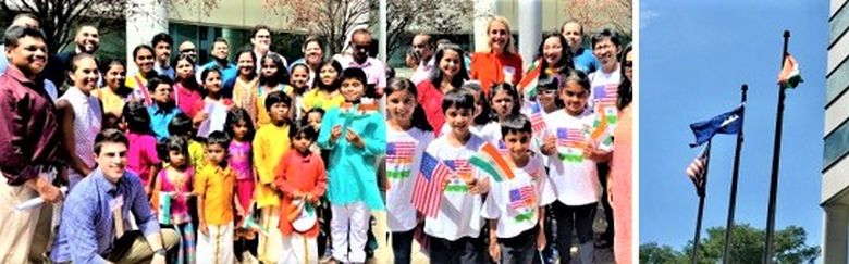 The day-long celebrations began with the hoisting of the American, Indian, and Connecticut flags at the Government Center in Stamford by Mayor Caroline Simmons, event Gold sponsor, an investment firm 3Lines Partner, Nandu Kuppuswamy, several elected officials from Connecticut General Assembly and Dr. Thomas Abraham, Chairman of GOPIO International. American and Indian national anthems were sung students of Stamford’s Hindi and Tamil schools.