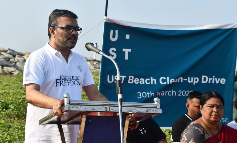 MB Rajesh, Minister for Local Self Government, inaugurated the programme at the Permumathura Beach at 7.30 am. More than 100 volunteers from UST participated in the beach cleanup drive, along with the local citizens.