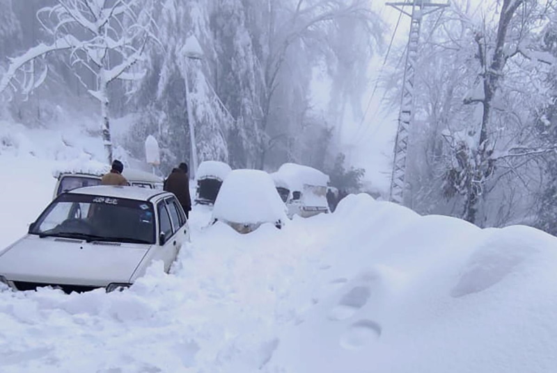 ഇസ്ലാമാബാദിൽ നിന്ന് 60 കിലോമീറ്റർ അകലെയുള്ള മുറെ പട്ടണത്തിലെ മുരി ഹിൽസ് റിസോർട്ടിൽ വെള്ളിയാഴ്ച രാത്രിയും ശനിയാഴ്ചയും 4 അടിയിൽ കൂടുതൽ (1 മീറ്റർ) മഞ്ഞ് പെയ്തു. നൂറുകണക്കിന് വാഹനങ്ങൾ മഞ്ഞിനടിയില് പെടുകയോ മഞ്ഞിൽ കുടുങ്ങിപ്പോവുകയോ ചെയ്തു.