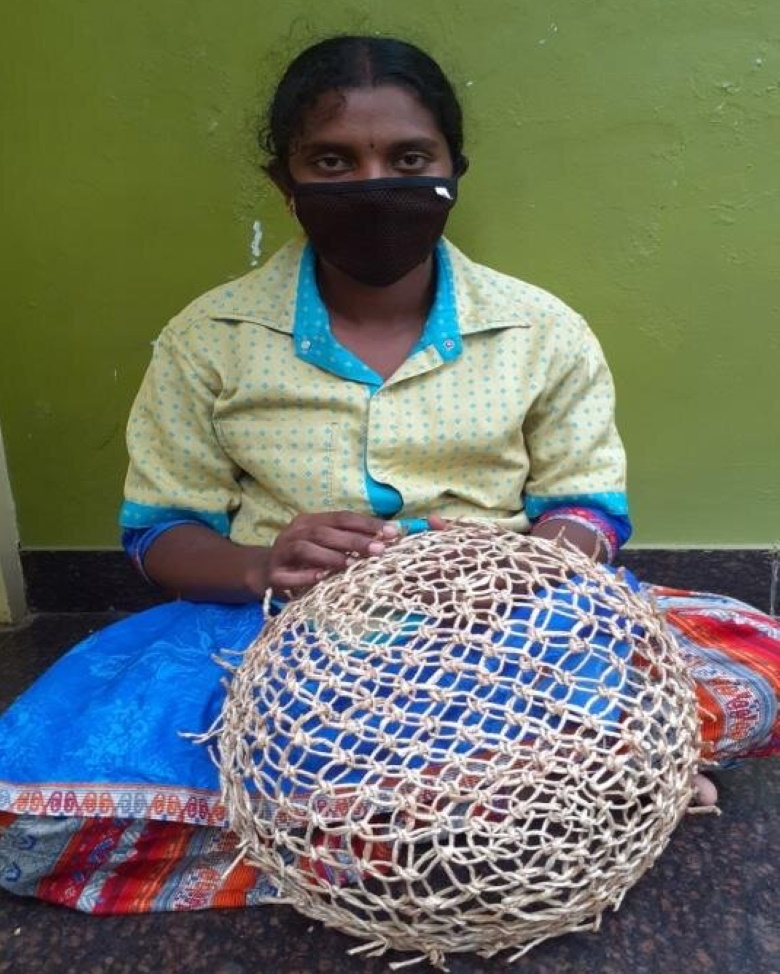 Chermaselvi, a weaver from Tamil Nadu has studied till 12th standard and she wanted to pursue higher education, but due to her family situation she got married at the age of 18th and she was not able to continue her higher education. She has one girl child.  During the Covid situation, her husband could not continue his business so she used to do tailoring and weaving baskets to earn her living.  She came to the organization in the month of February. She expressed her love for the organization by saying, “I was given the training to weave Vinter Basket.  Initially, I was able to weave 5 baskets per day, after continued practice, I was able to weave 25 baskets per day.  In the month, I earned Twelve Thousand Rupees.  As I was a good achiever in weaving I received a gift from the company. I love this work so much.  This is my first job working from home and I am able to take care of my child.”