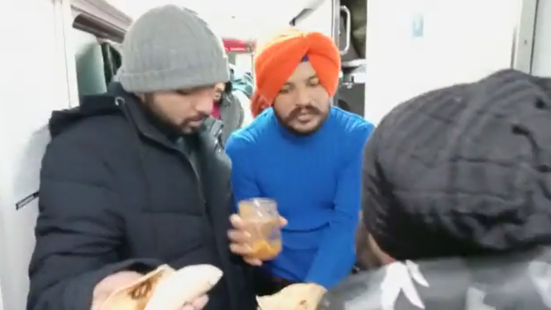 റഷ്യൻ അധിനിവേശത്തിനിടയിൽ ഉക്രെയ്നിൽ നിന്ന് പലായനം ചെയ്യാൻ ശ്രമിക്കുന്ന വിദ്യാർത്ഥികൾക്ക് ട്രെയിനിൽ ഒരു സിഖ് യുവാവ് ലങ്കാർ വിതരണം ചെയ്യുന്ന വീഡിയോ ഓൺലൈനിൽ വൈറലായി. ഖൽസ എയ്ഡ് സ്ഥാപകൻ രവീന്ദർ സിംഗ് ആണ് വീഡിയോ ട്വിറ്ററിൽ പോസ്റ്റ് ചെയ്തത്. ഉക്രെയ്നിന്റെ കിഴക്ക് ഭാഗത്തേക്ക് പോളണ്ട് അതിർത്തിയിലേക്ക് പോകുന്ന ട്രെയിന് ആണെന്നാണ് റിപ്പോർട്ട്.