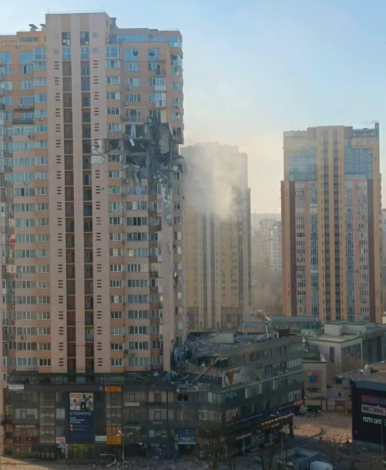 കിയെവിന്റെ തെക്കുപടിഞ്ഞാറൻ അറ്റത്തുള്ള സുലിയാനി വിമാനത്താവളത്തിനടുത്തുള്ള ഒരു ബഹുനില കെട്ടിടത്തിന്റെ 16-ഉം 21-ഉം നിലകൾക്കിടയിലാണ് റോക്കറ്റ് ഇടിച്ചതെന്ന് രക്ഷാപ്രവർത്തനത്തിൽ പങ്കെടുത്ത അഗ്നിശമന സേനാംഗം പെട്രോ പ്രോകോപോവ് പറഞ്ഞു. കുറഞ്ഞത് ആറ് പേർക്ക് പരിക്കേറ്റതായും കെട്ടിടത്തിന്റെ രണ്ട് നിലകളിൽ തീപിടുത്തമുണ്ടായതായും അവർ പറഞ്ഞു. രക്ഷാപ്രവർത്തനത്തിൽ ഏർപ്പെട്ടിരുന്ന ജീവനക്കാർ 80 പേരെ രക്ഷപ്പെടുത്തി.