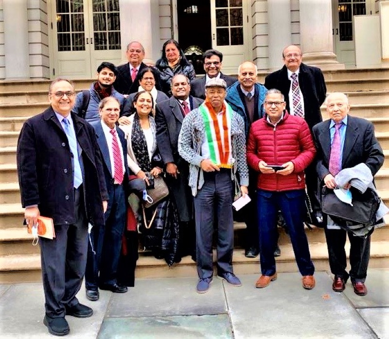 City Hall was represented by Mayor Adam’s Chief Advisor Ingrid Lewis-Martin and Deputy Mayor Meera Joshi. The Indian community delegation was headed by GOPIO Chairman Dr. Thomas Abraham along with GOPIO-Manhattan Executive VP Prof. Rajasekhar Vangapaty, VP Dr. Vimal Goyle and Treasurer Braj Aggarwal as well as GOPIO-New York Chapter Hon. Chair Lal Motwani and President Beena Kothari. Other community representatives were Association of Indians in America (AIA) President Gobind Munjal, Bharatiya Vidya Bhavan Executive Director Sudhir Vaishnav, Bhakti Center Program Coordinator Kartikeya Parashar, Society of Indian American Engineers and Architects (SIAEA) President Ketan Shah, BAPS Shri Swaminarayan Mandir National Coordinator for Public Affairs Girish Patel and Mukund Mehta, President of India Home and Indo-American Senior Citizen Center of New York.