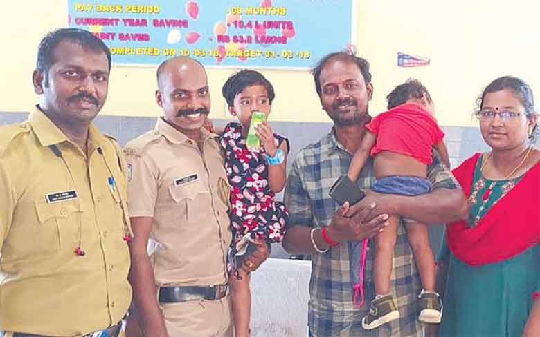 വര്ക്കല: റെയില്വേ സ്റ്റേഷനില് തീവണ്ടിയില് നിന്നിറങ്ങുമ്പോള് ട്രാക്കിലേക്കു വീണുപോയ നാലുവയസ്സുകാരിക്ക് പോലീസുകാര് രക്ഷകരായി. പ്ലാറ്റ്ഫോമിനും തീവണ്ടിക്കും ഇടയിലൂടെ താഴേക്ക് വീണ കുട്ടിയെ, തീവണ്ടി നീങ്ങിത്തുടങ്ങും മുമ്പ് സമയോചിതമായി ഇടപെട്ട് പോലീസുകാര് പുറത്തെത്തിക്കുകയായിരുന്നു. മധുര സ്വദേശി സെല്വകുമാറിന്റെയും