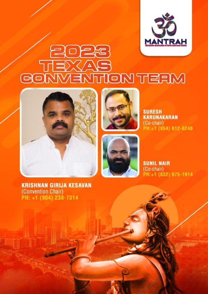 ഹ്യുസ്റ്റണിൽ 2023 ജൂലൈ 1 മുതൽ 4 വരെ നടക്കുന്ന മന്ത്ര ഗ്ലോബൽ ഹിന്ദു കൺവെൻഷൻ ചെയർമാൻ ആയി കൃഷ്ണൻ ജി കേശവനെ തിരഞ്ഞെടുത്തു. കോ ചെയർ ആയി സുരേഷ് കരുണാകരൻ, സുനിൽ നായർ എന്നിവരും തിരഞ്ഞെടുക്കപ്പെട്ടു. സംഘടനാ രംഗത്തു വ്യക്തിമുദ്ര പതിപ്പിച്ച, ഹ്യുസ്റ്റണിൽ തന്നെ താമസിക്കുന്ന മൂവരുടെയും സാന്നിധ്യം മന്ത്രയുടെ പ്രഥമ വിശ്വ ഹിന്ദു സമ്മേളനത്തിന്റെ വിജയകരമായ നടത്തിപ്പിന് സഹായകരമാകും എന്ന് പ്രസിഡന്റ് ഹരി ശിവരാമൻ അഭിപ്രായപ്പെട്ടു.