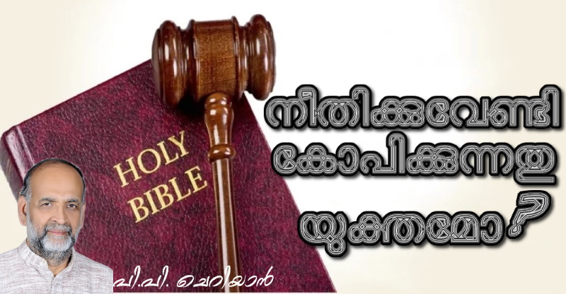 ആ ജഡ്ജിയുടെ കോപം നീതി നടപ്പാക്കാൻ കഴിയാത്തതിനായിരുന്നു എങ്കിൽ ,യോഹന്നാൻറെ സുവിശേഷം രണ്ടാം അധ്യായത്തിൽ രേഖപ്പെടുത്തിയിരിക്കുന്ന നമ്മുടെ കർത്താവിൻറെ കോപം നീതി നടത്താൻ കഴിഞ്ഞതിലുള്ള സംതൃപ്തിയെ ഓർമ്മപ്പെടുത്തുന്നതായിരുന്നു .ജെറുസലേം ദേവാലയത്തിലെ നാണയം കൈമാറ്റകാരെയും പ്രാവുകളെ വില്പനക്കാരെയും ദേവാലയത്തിന് പുറത്തേക്ക് ആട്ടിപ്പായിച്ചപ്പോൾ യേശുവിനെ കണ്ണുകളിൽനിന്നും തീപ്പൊരി ചിതറിയിരിക്കണം തൻറെ കയ്യിലിരുന്ന ചമ്മട്ടിയെക്കാൾ കൂടുതലായി ധാർമിക രോഷത്തോടെ കൂടിയ ആ നോട്ടം കണ്ടു ഭയപ്പെട്ടായിരിക്കണം അവർ പരക്കംപാഞ്ഞത് .അതേ നമ്മുടെ കർത്താവ് നീതിക്കുവേണ്ടി കോപിക്കുക തന്നെ ചെയ്തു.