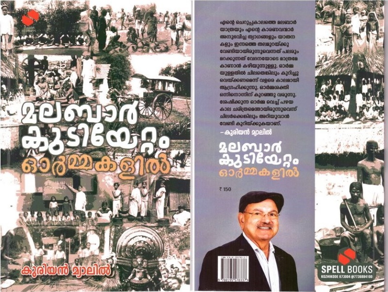 മദ്യനിരോധന മേഖലയായിരുന്ന മലബാറിലെത്തിയ ചില ചേട്ടډാര്‍ ചാരായ വാറ്റാരംഭിച്ചു. കാട്ടില്‍ കേറി കള്ളത്തോക്കില്‍ പന്നിയെ വെടിവെച്ച് വെടിയിറച്ചിലും, വാറ്റുചാരായവും സേവിച്ച് ജീവിതം ആസ്വദിക്കാനും അവര്‍ മറന്നില്ല. ഇപ്രകാരം മലബാര്‍കുടിയേറ്റത്തിന്‍റെ കയ്പ്പും മധുരവും നിറഞ്ഞ കഥകളും നേര്‍കാഴ്ചകളും നിറഞ്ഞ ഈ കൃതി ഒരു തിരക്കഥപോലെ ആകാംക്ഷയോടെ വായിച്ചു പോകാം. കരുത്തുറ്റ ആഖ്യാനശൈലി അനര്‍ഗ്ഗളമായ ലളിതമായ ഭാഷാ ശൈലികൊണ്ട് സമ്പുഷ്ടമാണ് ഈ കൃതി. ഒപ്പം അനുബന്ധമായി ചേര്‍ത്തിരിക്കുന്ന മലബാറിലെ ചില വാക്കുകളുടെ അര്‍ത്ഥങ്ങളും നാനാര്‍ത്ഥങ്ങളും വാചകങ്ങളും ശൈലികളും അത്യന്തം കൗതുകമുണര്‍ത്തുന്നതും അതിനൊപ്പം ഭാഷാ വിജ്ഞാനം പകരുന്നതുമാണ്.കുര്യന്‍ മ്യാലില്‍ സാറിന്‍റെ ‘മലബാര്‍ കുടിയേറ്റം ഓര്‍മകളില്‍’ വായനക്കാരുടെ സഹൃദയ സമക്ഷം പരിചയപ്പെടുത്തുന്നില്‍, അതിയായ സന്തോഷമുണ്ട്. ഗ്രന്ഥകര്‍ത്താവിനു എല്ലാ നല്ല ആശംസകളും നേരുന്നു.കോഴിക്കോടൂ സ്പെല്‍ ബുക്സ് പബ്ലിഷേഴ്സ് ആണ് പ്രസാധകര്‍.