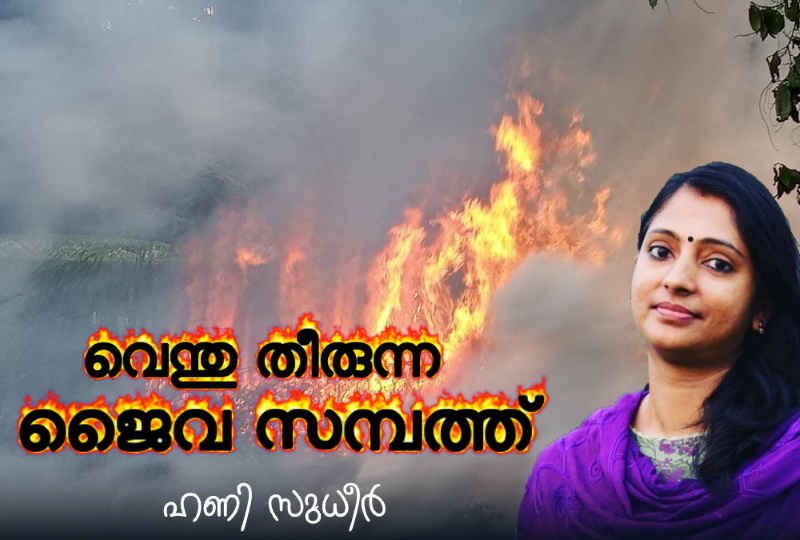 ജൈവസമ്പത്തിൽ കുഞ്ഞു ജീവികളെയാണ് കാട്ടുതീ കൂടുതലായും ബാധിക്കുന്നത്…. അനുദിനം കാട് കൈയ്യേറി ആവാസ വ്യവസ്ഥക്ക് കാര്യമായ കോട്ടം വരുത്തി വക്കുമ്പോൾ പരസ്ഥിതി സംരക്ഷണം പേരിൽ മാത്രമായി പോകുന്നുണ്ട്. കൂട്ടമായി കാട്ടിൽ നിന്നും പാലായനം ചെയ്യുന്ന പക്ഷിമൃഗാദികൾ നാട് കയറി ഉണ്ടാക്കുന്ന കൃഷി നാശനഷ്ടങ്ങൾ കണക്കിൽ പെടാത്തവയാണ്. കൃഷിയെ മാത്രം ആശ്രയിച്ചു കഴിയുന്ന കർഷകരുടെ വിലാപങ്ങൾ ഇന്നൊരു ഒരു പിന്നാമ്പുറ കാഴ്ചയും.