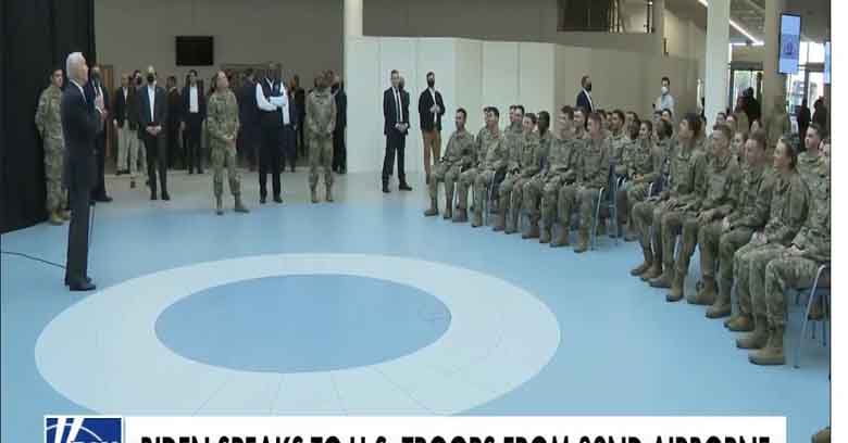 പോളണ്ടിലെ ജി2.എ അരീനയില് 82ാമത് എയര്സോണ് ഡിവിഷന് അംഗങ്ങളെ അഭിസംബോധന ചെയ്തു നടത്തിയ പ്രസംഗത്തില് ഉക്രെയ്നിലെ സ്്രതീകളും കുട്ടികളും റഷ്യന് ടാങ്കിനു നേരെ എന്തു ചെയ്യുന്നുവെന്ന് നിങ്ങള് അവിടെ ചെല്ലുമ്പോള് കാണാം. സാധാരണ ഉരെകയ്ന് ജനത റഷ്യന് സൈന്യത്തെ എങ്ങനെ നേരിടുന്നു എന്നതും നിങ്ങള്ക്ക് അവിടെ കാണാം. ഈ പ്രസ്താവനയാണ് ബൈഡന് സൈന്യത്തെ ഉക്രെയ്നിലേക്ക് അയക്കുമെന്ന ധാരണയിലെത്തിയത്.