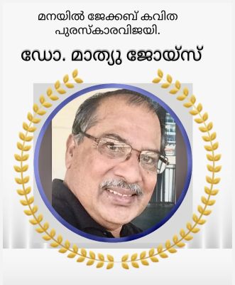 മനയിൽ ജേക്കബ് കവിതാ പുരസ്കാരം ലഭിച്ചത് ലാസ് വേഗസ്സിൽ നിന്നുള്ള ഡോ. മാത്യു ജോയ്സിനാണ്. അദ്ദേഹത്തിന്റെ “മാനിന്റെ മാതൃരോദനം ” എന്ന ചെറുകവിതയാണ് അഞ്ചംഗ ജഡ്ജിംഗ് പാനൽ തെരഞ്ഞെടുത്തത്. പ്രശസ്തി ഫലകവും 250 ഡോളർ ക്യാഷ് അവാർഡും വിജയിയുടെ പേരിൽ മാധ്യമ പ്രവർത്തകനും, എഴുത്തുക്കാരനുമായ പി പി ചെറിയാൻ തമ്പി ആന്റണിയിൽ നിന്നും ഏറ്റുവാങ്ങി.