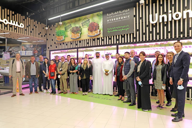 The delegation was given a detailed explanation during their tour of the Union Coop hypermarket branch at Al Warqa City Mall, about the most important services that Union Coop provides to consumers, in which it follows the best practices applied in the field of food retailing, delivery, customer happiness services, expansion strategies and digital solutions for retail, in addition to updating them of information about the culture of retail trade in the Union Coop. Furthermore, the delegation was educated about hydroponics and the ways the Union Farm located in Al Warqa City Mall ‘Union Coop’ branch is maintained. The experts from Union Coop answered all queries from the delegation and prospective commercial cooperation between the two parties was discussed.