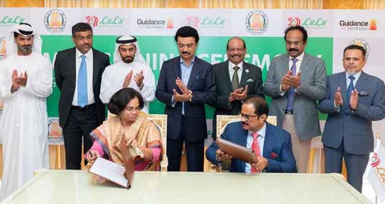 ഷോപ്പിംഗ് മാള്, ഭക്ഷ്യ സംസ്കരണ കേന്ദ്രം എന്നിവ ആരംഭിക്കുന്നതിനുള്ള ധാരണാ പത്രത്തില് ലുലു ഗ്രൂപ്പും സംസ്ഥാന സര്ക്കാരും ഒപ്പ് വെച്ചു. തമിഴ് നാടിനെ പ്രതിനിധീകരിച്ച് വ്യവസായ വികസന വകുപ്പ് പ്രോമോഷന് ബ്യൂറോ മാനേജിംഗ് ഡയറക്ടര് പൂജ കുല്ക്കര്ണിയും, ലുലു ഗ്രൂപ്പിനെ പ്രതിനിധികരിച്ച് ലുലു ഗ്രൂപ്പ് എക്സിക്യൂട്ടീവ് ഡയറക്ടര് എം.എ. അഷ്റഫ് അലിയുമാണ് മുഖ്യമന്ത്രി എം. കെ സ്റ്റാലിന്, വ്യവസായ മന്ത്രി തങ്കം തെന്നരശ്, എം.എ. യൂസഫലി എന്നിവരുടെ സാന്നിധ്യത്തില് ധാരണാ പത്രത്തില് ഒപ്പ് വെച്ചത്.