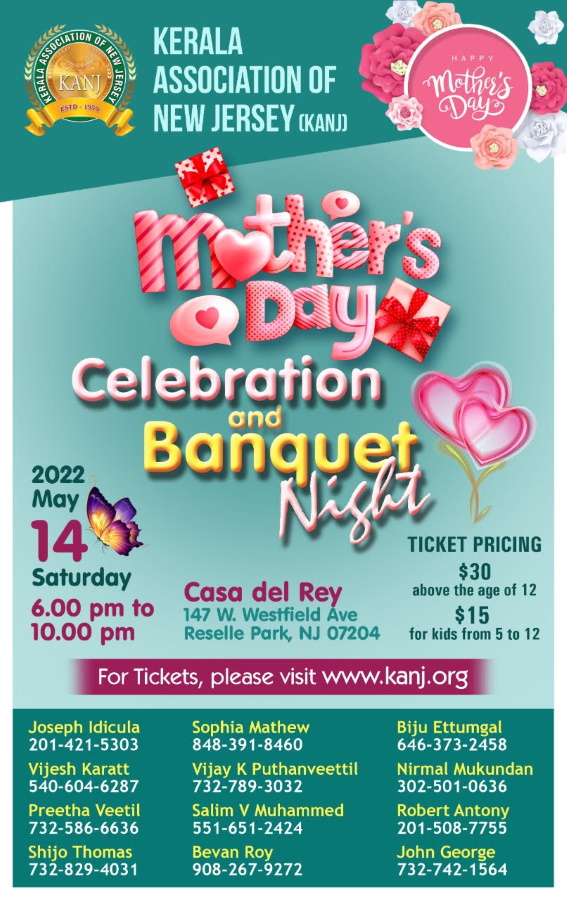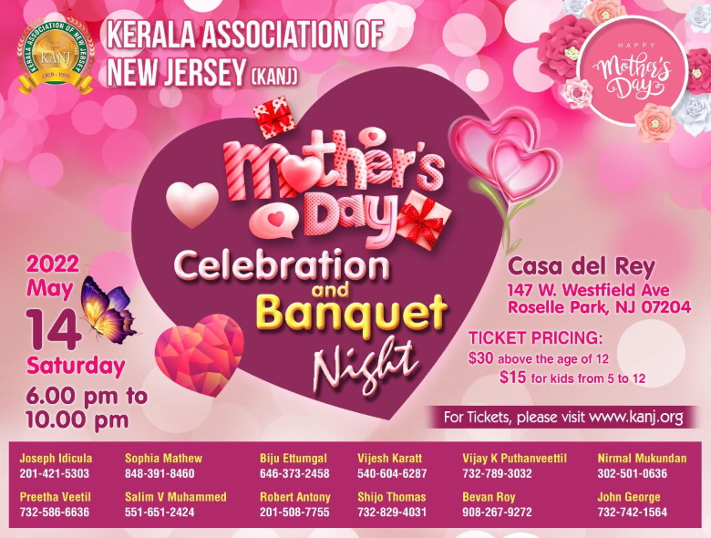 ഓരോ മനുഷ്യന്റെയും വഴികാട്ടിയും, ആശ്രയവുമാണ് മാതാവ്. അമ്മയെ സ്നേഹിക്കുകയും പരിചരിക്കുകയും, ആദരിക്കുകയും, അവരുടെ ജീവിതകാലം കൂടെ ചേർത്ത് നിർത്തുകയും ഓരോ മനുഷ്യന്റെയും കടമയും ദൗത്യവുമാണ്. അളവുകളില്ലാത്ത, അതിരുകളില്ലാത്ത സ്നേഹത്തിന്റെ,കരുതലിന്റെ ആദ്യത്തെയും അവസാനത്തെയും വാക്കാണ് അമ്മ. അമ്മമാരെ ആദരിക്കുകയും സ്നേഹിക്കുകയും ചെയ്യുന്നവർക്കായി 1905 ല് അമ്മ മരിച്ചതിനെ തുടര്ന്ന് അന്ന റീവെസ് ജാര്വിസ് തുടക്കമിട്ട മാതൃദിനം മുൻപെന്നത്തെക്കാളും പ്രത്യേകതയും പ്രാധാന്യവും അർഹിക്കുന്നു. കേരള അസോസിയേഷൻ ഓഫ് ന്യൂ ജേഴ്സിയും അമ്മമാർക്കായി പ്രത്യേക കലാവിരുന്നും, സംഗീത മേളയും, ഫാഷൻ പ്രദര്ശനവുമൊക്കെയായി മെയ് പതിനാലിന് ഒത്തുകൂടുന്നു. ന്യൂ ജേഴ്സി റോസെൽ പാർക്കിലുള്ള കാസ ഡെൽ റെ എന്ന പ്രശസ്തമായ ബാങ്ക്വറ്റ് ഹാളിൽ വച്ചാണ് ആഘോഷങ്ങൾ നടത്തപ്പെടുന്നത്.