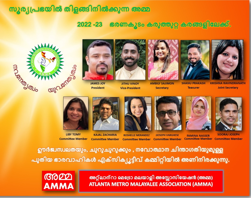 Congratulating the new executive members, the outgoing President, Mr. Chackonal, added, “AMMA is in the strong and safe hands of these energetic men and women. Unlike other years, it is very heartening to note that many young volunteers have come forward to serve and lead our Malayalee community. They are talented and interested in inculcating our next generation with our culture, traditions, and language.”