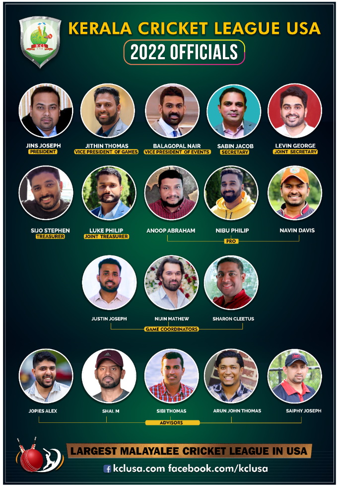കേരള ക്രിക്കറ്റ് ലീഗ് യു എസ് എ 2022 ഭാരവാഹികൾ: