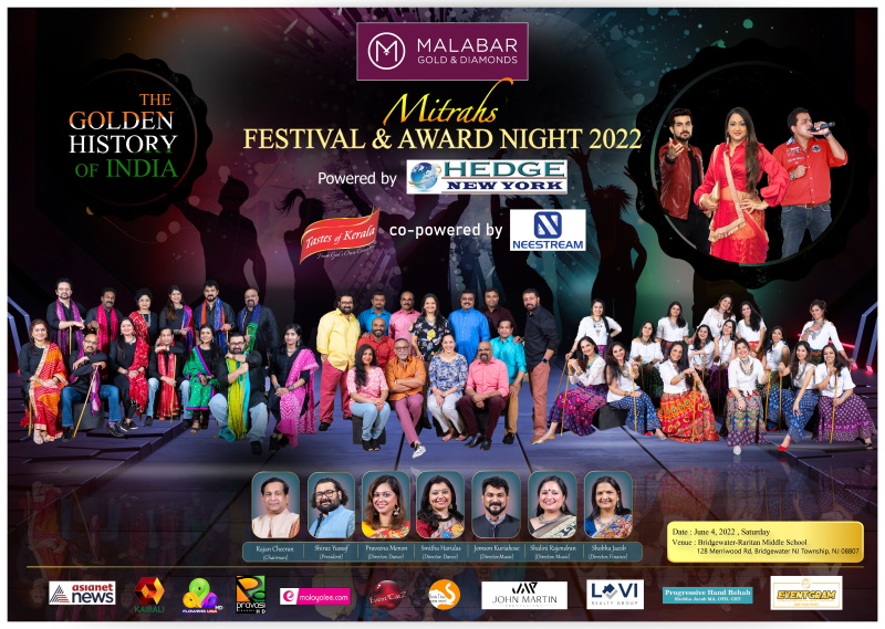 ന്യൂജേഴ്സി : നോർത്ത് അമേരിക്കയിലെ ഏറ്റവും വലിയ കലാമാമാങ്കങ്ങളിലൊന്നായ മലബാർ ഗോൾഡ് ആൻഡ് ഡയമൻഡ്സ് മിത്രാസ് ഫെസ്റ്റിവൽ ആൻഡ് അവാർഡ് നെറ്റിന് ജൂൺ നാലിന് തിരശീല ഉയരും .