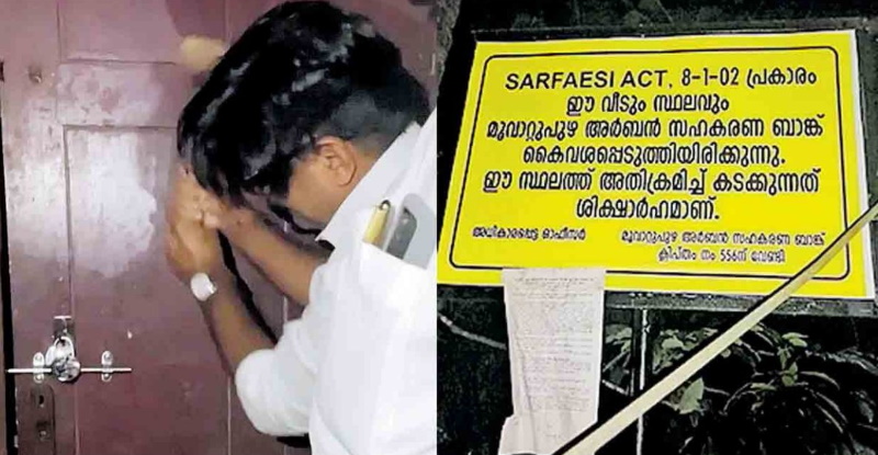 മൂവാറ്റുപുഴ വലിയപറമ്പിൽ അജേഷിന്റെയും മഞ്ജുവിന്റെയും വീടാണ് ബാങ്ക് ഉദ്യോഗസ്ഥർ എത്തി ജപ്തി ചെയ്തത്. അച്ഛനും അമ്മയും ആശുപത്രിയിൽ കഴിയുന്നതിനിടെ അവരുടെ 3 പെൺകുട്ടികൾ ഉൾപ്പെടെ 4 മക്കളെ വീട്ടിൽ നിന്നിറക്കി വിട്ട് മൂവാറ്റുപുഴ അർബൻ സഹകരണ ബാങ്കിന്റെ ജപ്തി നടപടി. മാതാപിതാക്കൾ എത്തിയ ശേഷം വീടു വിട്ടിറങ്ങാം എന്നു പറഞ്ഞിട്ടും ബാങ്ക് ഉദ്യോഗസ്ഥർ ഇവരെ ഇറക്കി വിട്ട് വീട് മുദ്ര വച്ചതായി പറയുന്നു.