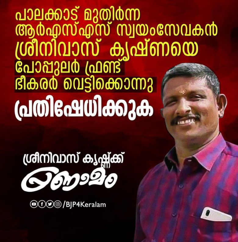 സഞ്ജിത്തിനെയും ശ്രീനിവാസനെയും പട്ടാപ്പകൽ നിരവധി ആളുകളുടെ കണ്മുന്നിൽ വെച്ചാണ് കൊല ചെയ്തത്. ഈ രണ്ട് കൊലപാതകങ്ങളും നടക്കുമെന്ന് പൊലീസിന് വളരെ വ്യക്തമായി അറിയാമായിരുന്നു. പക്ഷേ പോലീസിന്റെ ഭാഗത്തുനിന്നും ഉണ്ടായ നിഷ്ക്രിയത്വം അക്രമികൾക്ക് എന്തും ചെയ്യാൻ ഉള്ള ഒരു അവസരം ഒരുങ്ങി.