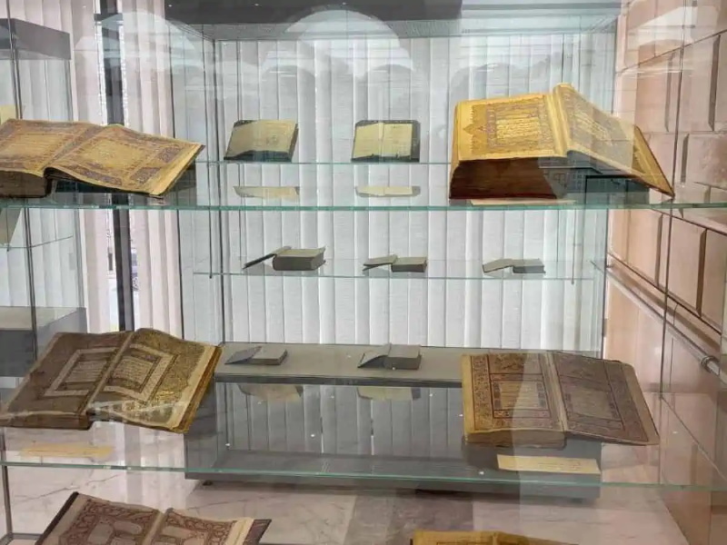 267 ഖുർആനുകളും 20 വിലപിടിപ്പുള്ള മ്യൂസിയം കോപ്പികളും അടങ്ങുന്ന വിശുദ്ധ ഖുർആനിന്റെ ശേഖരങ്ങളാണ് ലൈബ്രറി സ്വന്തമാക്കുന്നത്. വിവിധ പുഷ്പ അലങ്കാരങ്ങളോടുകൂടിയ ഇന്ത്യൻ ഖുർആനുകളുടെ വിലപ്പെട്ട ശേഖരങ്ങളും മനോഹരമായ ചൈനീസ്, കാശ്മീരി, മംലൂക്ക് നിർമ്മാണ സാമ്പിളുകളും ലൈബ്രറി പ്രദർശിപ്പിച്ചിരുന്നു.