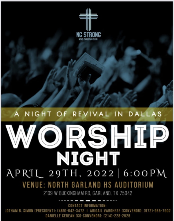 ഡാലസിലെ യുവജനങ്ങൾക്കിടയിൽ അറിയപ്പെടുന്ന ക്രിസ്ത്യൻ ഗായകസംഘമായ എൻ ജി ക്രിസ്ത്യൻ ബീറ്റ്സ് പാട്ടുകൾക്ക് നേതൃത്വം നൽകുമെന്നു ഗായകസംഘത്തിന്റ്റെ ചുമതലവഹിക്കുന്ന മിസ്സ്. അബിഗെൽ വർഗീസ് അറിയിച്ചു.