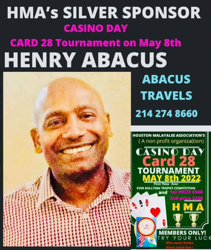 എച്ച് എം എ യുടെ മെമ്പർഷിപ്പ് വർധിപ്പിക്കുന്നതിന് വേണ്ടി ഭാരവാഹികൾ കണ്ടെത്തിയ വളരെ ആനന്ദകരമായ കാസിനോ ഡേ യിലേക്ക് എല്ലാ മലയാളികളെയും, പ്രത്യേകിച്ച് ഹ്യൂസ്റ്റൺ മലയാളികളെ, ക്ഷണിച്ചുകൊള്ളുന്നു. എല്ലാവരുടെയും അനുഗ്രഹാശിസ്സുകൾ വിനയപൂർവ്വം അഭ്യർത്ഥിച്ചുകൊള്ളുന്നു.