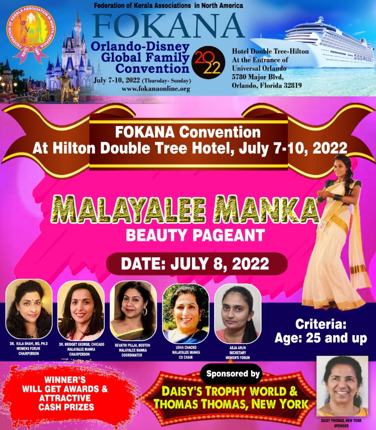ന്യൂജേഴ്‌സി: 2022 ജൂലൈ 7 മുതൽ 10 വരെ ഒർലാണ്ടോയിലെ ഹിൽട്ടൺ ഡബിൾ ട്രീ ഹോട്ടലിൽ നടക്കുന്ന ഫൊക്കാന ഗ്ലോബൽ ഡിസ്‌നി കൺവെൻഷനോടനുബന്ധിച്ച് നടത്തുന്ന മലയാളി മങ്ക ബ്യുട്ടി പേജന്റ് മത്സരത്തിനുള്ള ഒരുക്കങ്ങൾ ആരംഭിച്ചു. ഫൊക്കാന കൺവെൻഷനുകളിലെ പ്രധാന ആകർഷങ്ങളിൽ ഒന്നായ മലയാളി മങ്ക എന്ന സ്ത്രീകൾക്കുള്ള ഈ സൗന്ദര്യ മത്സരം ഫൊക്കാന വിമൻസ് ഫോറമാണ് നടത്തി വരുന്നത്. ഫൊക്കാന വിമൻസ് ഫോറം ചെയർപേഴ്സൺ ഡോ. കല ഷഹി, സെക്രെട്ടറി അബ്ജ അരുൺ, ഡോ. ബ്രിജിത്ത് ജോർജ് (ചിക്കാഗോ)- മലയാളി മങ്ക ബ്യൂട്ടി പേജന്റ് ചെയർപേഴ്സൺ, ഫൊക്കാന ന്യൂ ഇംഗ്ലണ്ട് (ബോസ്റ്റൺ) റീജിയൺ വൈസ് പ്രസിഡണ്ട് രേവതി പിള്ള – കോർഡിനേറ്റർ, ഉഷ ചാക്കോ(ന്യൂയോർക്ക്) കോ-ചെയർ എന്നിവർ നേതൃത്വം നൽകുന്ന കമ്മിറ്റിയാണ് മലയാളി മങ്ക മത്സരത്തിനുള്ള ഒരുക്കങ്ങൾ നടത്തി വരുന്നത്.