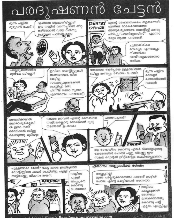 കഴിഞ്ഞ 15 വർഷങ്ങളായി കൈരളി മാസികയിൽ പരദൂഷണം ചേട്ടൻ എന്ന പക്തിയിൽ തുടർച്ചയായി കാർട്ടൂൺ പരമ്പര രചിച്ച് അമേരിക്കൻ മലയാളികളെ ചിരിപ്പിക്കുകയും ചിന്തിപ്പിക്കുകയും ചെയ്ത പ്രശസ്ത കാർട്ടൂണിസ്റ്റ് ആണ് അദ്ദേഹം. ശ്രീ. ഹരിദാസ് തങ്കപ്പൻ കാർട്ടൂൺ രംഗത്തും മാധ്യമ രംഗത്തും നൽകിയ സമഗ്ര സംഭാവനകളെ മുൻനിർത്തി അദ്ദേഹത്തിന് ഇന്ത്യ പ്രസ് ക്ലബ് ഓഫ് നോർത്ത് ടെക്സാസ് കമ്മിറ്റിയുടെ അനുമോദനങ്ങളും ആശംസകളും അറിയികുന്നതായി ഐ പി സി എൻ റ്റി പ്രസിഡന്റ് സിജു വി ജോർജ് അറിയിച്ചു .