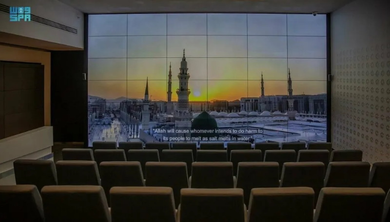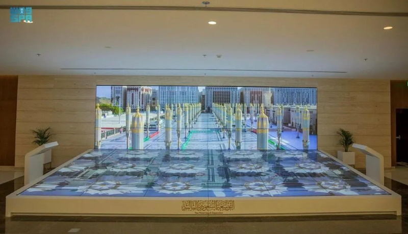 വിവിധ ഭാഷകളിൽ പ്രവാചകന്റെ പള്ളിയുടെ വാസ്തുവിദ്യയുടെ കാലഗണനയെ ആശ്രയിക്കുകയും ഉള്ളടക്കങ്ങൾ പ്രദർശിപ്പിക്കുന്നതിന് ആധുനിക സാങ്കേതികവിദ്യകൾ ഉപയോഗിക്കുകയും ചെയ്യുന്ന പ്രദർശനത്തിൽ നിരവധി വിലപിടിപ്പുള്ള വസ്തുക്കളും എടുത്തുകാണിക്കുന്നു.