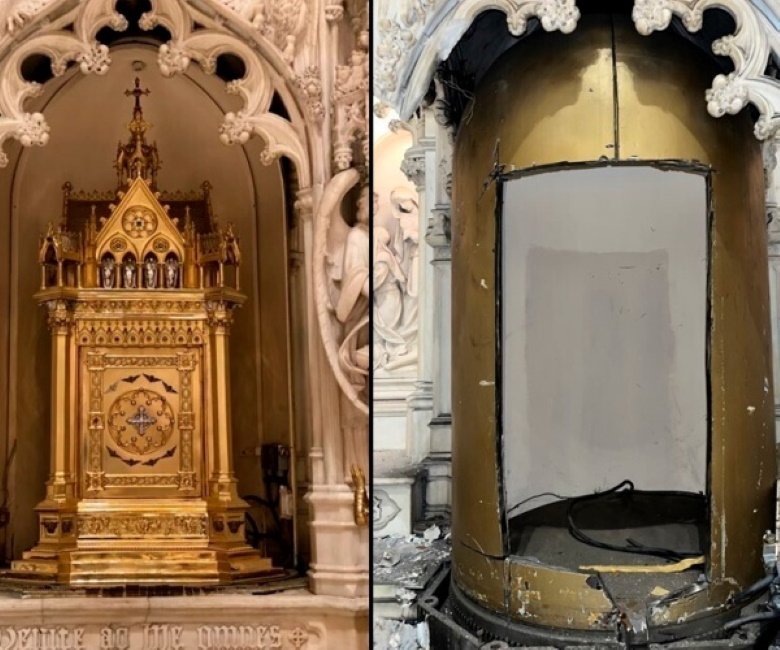 മേയ് 26നു 28 നും ഇടയിലാണ് ടാബർ നാക്കിൾ കളവുപോയതെന്നു കരുതുന്നു. ദേവാലയത്തിന്റെ ആൾട്ടറിലുണ്ടായിരുന്ന മാലാഖയുടെ പ്രതിമ തല അറുത്ത നിലയിലും കാണപ്പെട്ടു. സക്രാരിയിലുണ്ടായിരുന്ന വിശുദ്ധ വസ്തുക്കൾ അൾത്താരക്ക് ചുറ്റും ചിതറി കിടക്കുകയായിരുന്നു. മോഷ്ടാക്കൾ ശക്തമായ ആയുധങ്ങൾ ഉപയോഗിച്ചതായും സെക്യൂരിറ്റി സിസ്റ്റം തകർത്തതായും കണ്ടെത്തിയിട്ടുണ്ട്.