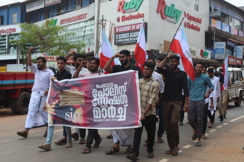പേരാമ്പ്രയിലെ വിദ്വേഷ പ്രകടനത്തിനെതിരെ നിസ്സാരവകുപ്പുകൾ മാത്രം ചുമത്തിയ പോലീസ് നടപടിക്കെതിരെ എസ്.ഐ.ഓ കോഴിക്കോട് ജില്ലാ കമ്മിറ്റി പോലീസ് സ്റ്റേഷൻ മാർച്ച് സംഘടിപ്പിച്ചു. എസ്.ഐ.ഓ സംസ്ഥാന സെക്രട്ടറി വാഹിദ് ചുള്ളിപ്പാറ ഉ്ഘാടനം നിർവ്വഹിച്ചു. സംഘപരിവാറിൻ്റെ വിദ്വേഷ പ്രചാരണത്തെ സ്വാഭാവികവൽകരിക്കുന്ന നടപടിയാണ് പോലീസിൻ്റേതെന്ന് അദ്ദേഹം അഭിപ്രായപ്പെട്ടു. എസ്.ഐ.ഒ ജില്ലാ പ്രസിഡൻ്റ് അൻവർ കോട്ടപ്പള്ളി, സെക്രട്ടറി നവാഫ് പാറക്കടവ്, ജോയിൻ്റ് സെക്രട്ടറിമാരായ ഷഫാഖ് കക്കോടി, മൻഷാദ് മനാസ്, ഉമർ മുക്താർ എന്നിവർ സംസാരിച്ചു.