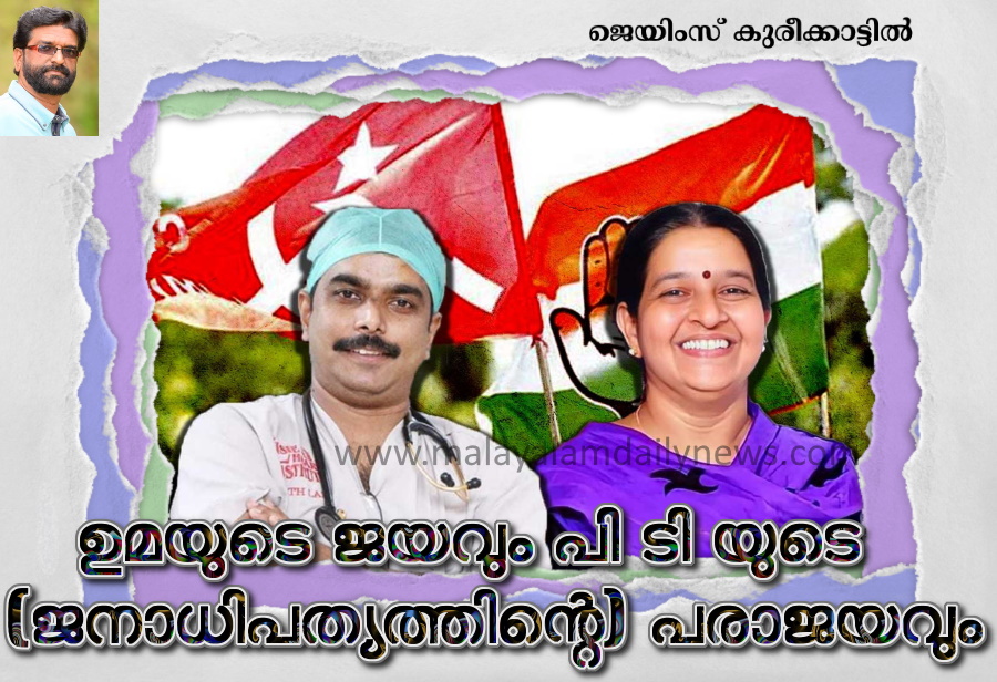 ഉമയുടെ വിജയത്തിൽ സന്തോഷമോ, ജോ ജോസഫിന്റെ പരാജയത്തിൽ സങ്കടമോ എനിക്ക് തോന്നുന്നില്ല. കാരണം, ഉമയുടെ വിജയം ഒരു പരാജയം കൂടിയാണ്. പി ടി യുടെ പരാജയം…. ജനാധിപത്യത്തിന്റെ പരാജയം…..