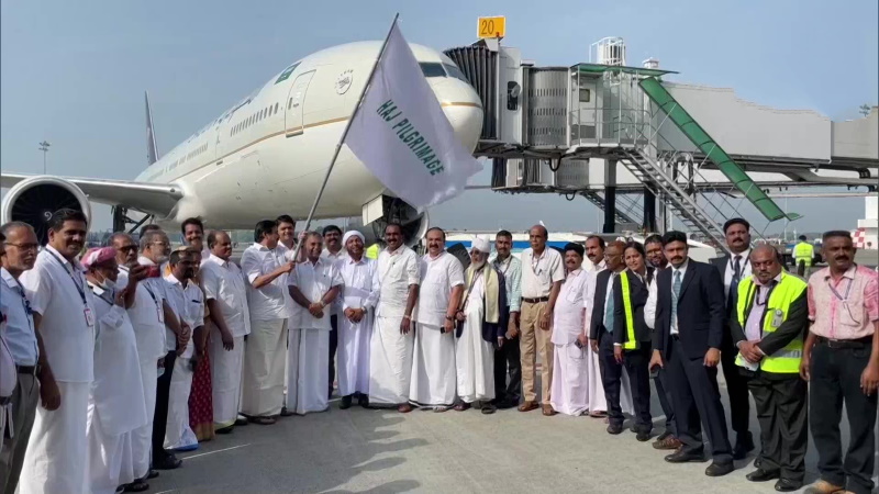കേരളത്തില് നിന്നുള്ള ഹജ്ജ് തീർഥാടകരുമായി ആദ്യ വിമാനം നെടുമ്പാശ്ശേരി വിമാനത്താവളത്തിൽ നിന്ന് ഇന്ന് (ജൂണ് 4 ശനിയാഴ്ച) രാവിലെ 8:30 ന് പുറപ്പെട്ടു. സൗദി അറേബ്യൻ എയർലൈൻസിന്റെ എസ്വി 5747 വിമാനത്തിൽ 377 യാത്രക്കാരാണുള്ളത്.