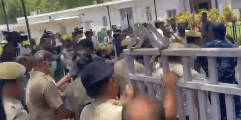 എഐസിസി ജനറൽ സെക്രട്ടറി കെസി വേണുഗോപാൽ പാർട്ടി ആസ്ഥാനത്തേക്ക് പൊലീസ് കയറുന്നതിന്റെ വീഡിയോ ട്വിറ്ററിൽ പങ്കുവച്ചു.