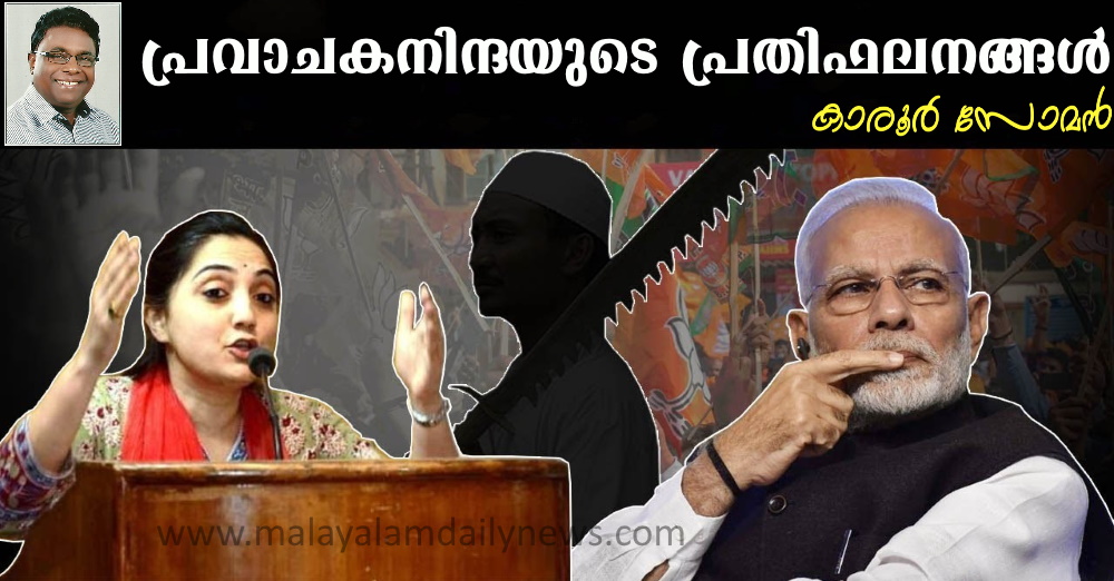 പ്രവാചക നിന്ദയുടെ നേർത്ത അലകൾ അതിർവരമ്പുകൾ താണ്ടിയെത്തിയത് പ്രധാനമായും ഇസ്ലാമിക രാജ്യങ്ങളിലാണ്. അതിനെ ഭക്തിനിർഭരമായ മിഴികളോടെ കാണാൻ സാധിക്കില്ല. നിലാവിൽ കുളിച്ചു നിൽക്കുന്ന അതിമനോഹരങ്ങളായ പത്മാസനത്തിലിരിക്കുന്ന ചില രാജാക്കന്മാർ ഇതര മത വിശ്വാസികളോട് കാട്ടുന്ന അസഹിഷ്ണത ഞാനും ഗൾഫിലുണ്ടായിരുന്നപ്പോൾ കണ്ടിട്ടുണ്ട്. എന്നാലും അവർ മലയാളികളുടെ പോറ്റമ്മയാണ്.