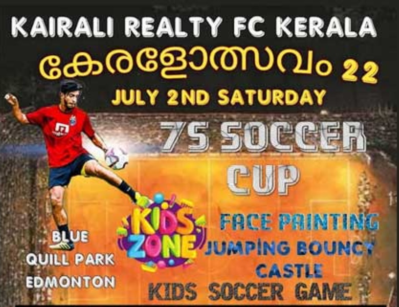 എഡ്മന്റൻ: കൈരളി റിയൽറ്റി എഫ് സി കേരള ട്രോഫികൾക്ക് വേണ്ടിയുള്ള അഖില കാനഡ സെവൻസ് ഫുട്ബോൾ ടൂറ്ണമെന്റും, കേരളോത്സവവും ജൂലൈ രണ്ടിന് എഡ്മന്റണിലെ ബ്ലൂ ക്വിൽസ് പാർക്കിൽ നടക്കും. അഖില കാനഡ ടൂര്ണനെന്റിൽ വിജയികൾ ആകുന്നവർക് എഡ്മിന്റണിലെ കൈരളി റിയാലിറ്റി ഗ്രൂപ് സ്പോന്സർ ചെയ്യുന്ന ഫ്സി കേരള എവർ റോളിംഗ് ട്രോഫിയും, 2022 ഡോളറും ആണ് സമ്മാനം. റണ്ണേഴ്സ് അപ് ആകുന്നവർക് ടൂര്ണണമെന്റ് സംഘാടകരായ എഫ് സി കേരള നൽകുന്ന എവർ റോളിംഗ് ട്രോഫിയും 1001 ഡോളറും ആണ് സമ്മാനം. എഡ്മണ്ട്നിൽ നിന്നുള്ള ടീമുകൾ കൂടാതെ കാൽഗരി, ടോറോന്റോ, സാസ്കറ്റൂണ്, റജൈന എന്നിവിടങ്ങളിൽ നിന്നുള്ള മലയാളി ഫുട്ബോൾ ടീമുകളും ടൂർണമെന്റിൽ പങ്കെടുക്കും.