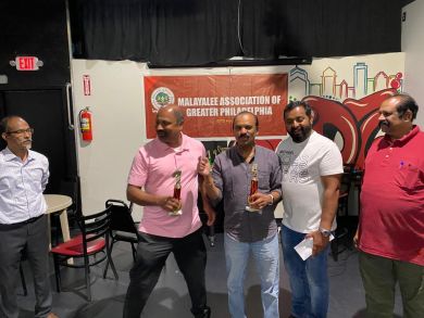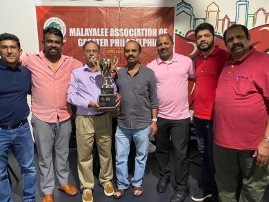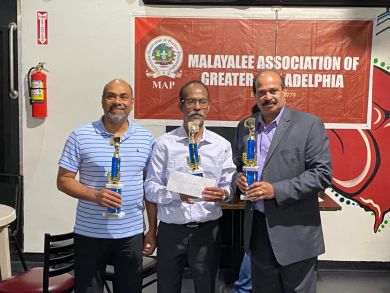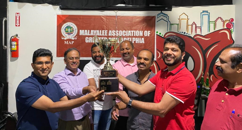 ഫിലാഡൽഫിയ: നോര്ത്ത് അമേരിക്കന് മലയാളി സമൂഹത്തില് കലാ കായിക സാമൂഹിക മേഖലകളിൽ വ്യക്തി മുദ്ര പതിപ്പിച്ച മലയാളി അസോസിയേഷൻ ഓഫ് ഗ്രെയ്റ്റർ ഫിലാഡൽഫിയായുടെ (MAP) ആഭിമുഖ്യത്തിൽ ജൂൺ 11, ശനിയാഴ്ച രാവിലെ 8 :30 മുതൽ റെഡ്സ് ബാർ & ഗ്രില്ലിൽ വച്ച് നടന്ന പത്താമത് പോൾ വർക്കി മെമ്മോറിയൽ എവർ റോളിങ് ട്രോഫി 56 – ചീട്ടുകളി മത്സരത്തിൽ ഒന്നാം സമ്മാനമായ ആയിരം ഡോളർ ക്യാഷ് പ്രൈസും ട്രോഫികളും ബോബി വർഗീസ് ക്യാപ്റ്റൻ ആയുള്ള ന്യൂജേഴ്സി ടീമും, രണ്ടാം സമ്മാനമായ എഴുന്നൂറ്റി അമ്പത് ഡോളർ ക്യാഷ് പ്രൈസും ട്രോഫികളും സക്കറിയ കുര്യൻ ക്യാപ്റ്റൻ ആയിട്ടുള്ള ഡെലവെയർ ടീമും മൂന്നാം സ്ഥാനമായ അഞ്ഞൂറ് ഡോളർ ക്യാഷ് പ്രൈസും ട്രോഫികളും സുനിൽ നൈനാൻ (വിൻഡ്സർ കാനഡ) ക്യാപ്റ്റനായിട്ടുള്ള ഡിട്രോയിറ്റ് ടീമും, നാലാം സ്ഥാനമായ മുന്നൂറ് ഡോളർ ക്യാഷ് പ്രൈസും ട്രോഫികളും സാബു സ്കറിയ ക്യാപ്റ്റനായിട്ടുള്ള ഫിലാഡൽഫിയാ ടീമും കരസ്ഥമാക്കി.