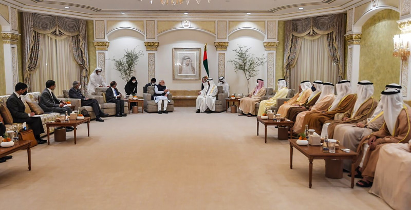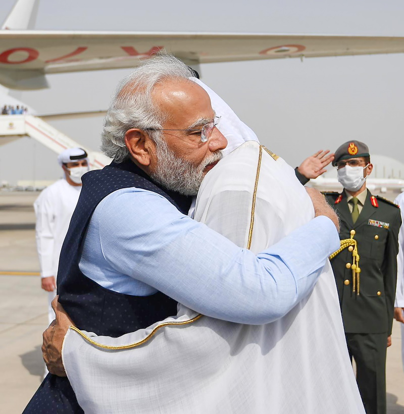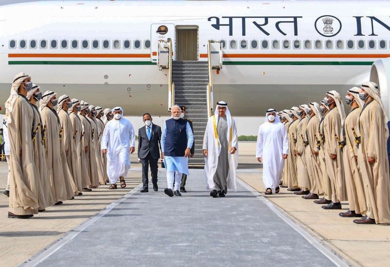 ഒരു പ്രത്യേക സാഹചര്യത്തില്‍, യുഎഇ പ്രസിഡന്റും അബുദാബി ഭരണാധികാരിയുമായ ഷെയ്ഖ് മുഹമ്മദ് ബിൻ സായിദ് അൽ നഹ്‌യാൻ, രാജകുടുംബത്തിലെ മുതിർന്ന അംഗങ്ങൾക്കൊപ്പം പ്രധാനമന്ത്രിയെ സ്വീകരിക്കാന്‍ അബുദാബി വിമാനത്താവളത്തിൽ എത്തിയിരുന്നു,” വിദേശകാര്യ മന്ത്രാലയ വക്താവ് അരിന്ദം ബാഗ്ചി ട്വീറ്റ് ചെയ്തു.
