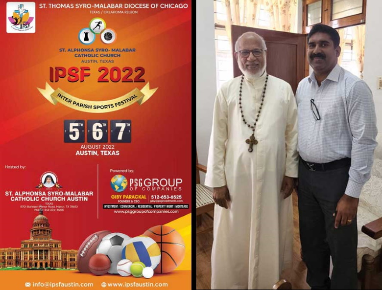 ഐ.പി.എസ്.എഫ് 2022 മെഗാ സ്പോര്ട്സ് ഫെസ്റ്റിന് ഏകദേശം 2500 -ത്തോളം കായിക താരങ്ങളും ആറായിരത്തിലധികം കായികപ്രേമികളും പങ്കെടുക്കുമെന്ന് ചീഫ് കോര്ഡിനേറ്റര് മേജര് ഡോ. ജോര്ജ് അറിയിച്ചു. ഓസ്റ്റിനിലെ സെന്റ് അല്ഫോന്സാ ദേവാലയം അതിഥ്യമരുളുന്ന ഈ ഇന്റര് പാരാഷ് സ്പോര്ട്സ് മേളയുടെ വിജയത്തിനായി വിവിധ കമ്മിറ്റികള് എട്ടു ദേവാലയങ്ങളിലായി പ്രവര്ത്തിച്ചുവരുന്നു. കൂടുതല് വിവരങ്ങള്ക്ക്: സണ്ണി തോമസ് (512 897 5296).