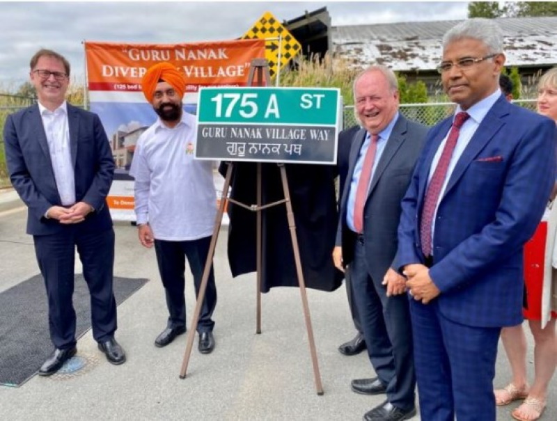 കാനഡയിലെ ക്ലോവർഡെയ്‌ലിൽ ഗുരുനാനാക്ക് വില്ലേജ് വേ സ്ട്രീറ്റ് അനാച്ഛാദനം ചെയ്തു