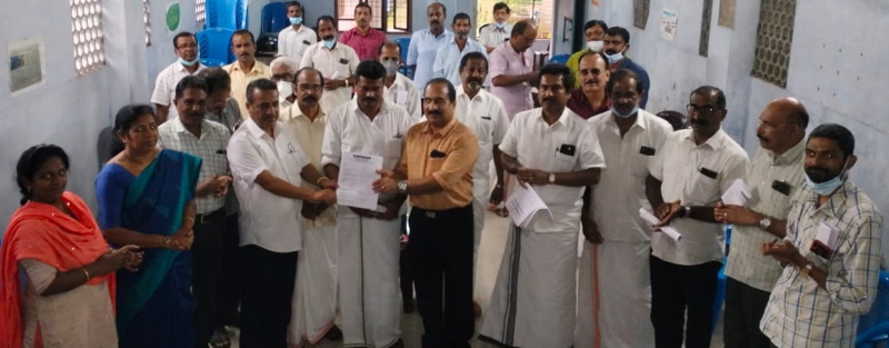 രാഷ്ട്രീയ കിസാന് മഹാസംഘ് ഒന്നാം കര്ഷക കമ്മീഷന് മുമ്പാകെ ഓള് ഇന്ത്യ ഫാര്മേഴ്സ് അസോസിയേഷന്റെ ആഭിമുഖ്യത്തില് പാറത്തോട് പെന്ഷന് ഭവനില്വെച്ച് കാഞ്ഞിരപ്പള്ളി താലൂക്കിലെ കര്ഷകപ്രശ്നങ്ങളും നിര്ദ്ദേശങ്ങളും രാഷ്ട്രീയ കിസാന് മഹാസംഘ് സൗത്ത് ഇന്ത്യ കണ്വീനര് അഡ്വ. വി.സി.സെബാസ്റ്റ്യന് ഐഫ ജില്ലാ സെക്രട്ടറി വര്ഗീസ് കൊച്ചുകുന്നേല് സമര്പ്പിക്കുന്നു. മറിയാമ്മ ജോസഫ്, പ്രൊഫ.സാജു ജോസഫ്, ബേബിച്ചന് ഏര്ത്തയില്, രാഷ്ട്രീയ കിസാന് മഹാസംഘ് സംസ്ഥാന ചെയര്മാന് അഡ്വ.ബിനോയ് തോമസ്, സൈമണ് ഇലഞ്ഞിമറ്റം, സിബി നമ്പുടാകം, ജോണ്സി ജേക്കബ്, സൈമണ് ഇല്ലിക്കല്, ഷാജി ജേക്കബ്, എന്നിവര് സമീപം.