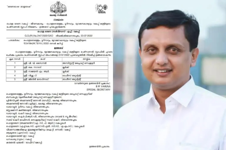 ബാക്കിയുള്ളവരെ സഹകരണ മന്ത്രി വി എൻ വാസവൻ, കായിക മന്ത്രി വി അബ്ദുർ റഹിമാൻ എന്നിവരുടെ പേഴ്സണൽ സ്റ്റാഫിലേക്ക് മാറ്റി. സജി ചെറിയാൻ മന്ത്രിയായിരിക്കെ പ്രൈവറ്റ് സെക്രട്ടറിയായി പ്രവർത്തിച്ച മനു സി പുളിക്കലിനെ കായിക മന്ത്രിയുടെ പ്രൈവറ്റ് സെക്രട്ടറിയായി നിയമിച്ചു.
