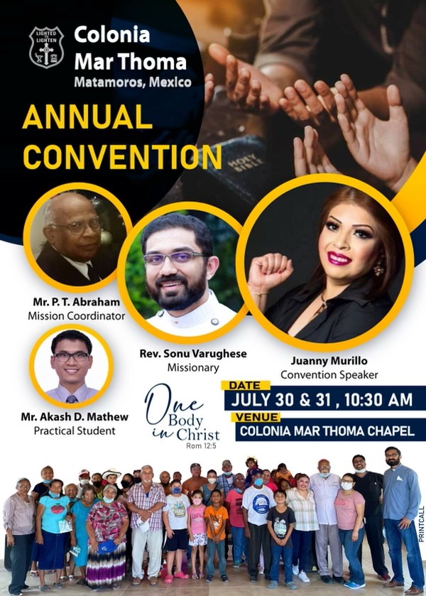 ന്യുയോർക്ക്: മാർത്തോമ്മ സഭയുടെ നോർത്ത് അമേരിക്ക – യൂറോപ്പ് ഭദ്രാസനത്തിന്റെ നേതൃത്വത്തിൽ മിഷൻ പ്രവർത്തനങ്ങളുടെ ഭാഗമായി മെക്സിക്കോ രാജ്യത്തെ വടക്ക്കിഴക്കൻ പ്രദേശമായ തമൗലിപാസ് ജില്ലയിൽ മറ്റമോറോസ് സിറ്റിയിൽ പണികഴിപ്പിച്ച കൊളോണിയ മാർത്തോമ്മ സെന്ററിലുള്ള ദേവാലയത്തിൽ വെച്ച് നാളെ (ശനിയാഴ്ച്ച) മാർത്തോമ്മ കൺവെൻഷന് തുടക്കം കുറിക്കും.